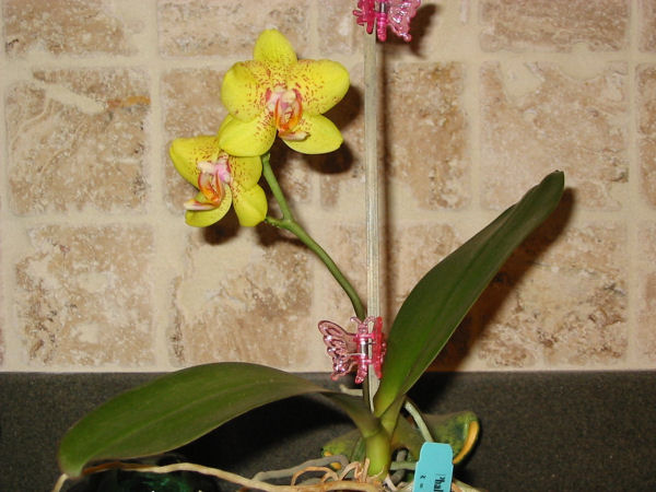 I have somehow convinced my orchid to rebloom. I can't remember when I bought this, but it was at least two years ago. It has languished sadly on my kitchen windowsill, sending roots towards the sink like it knows where the faucet is. Occasionally, I dust the leaves. And now, mirabile dictu, actual flowers have appeared.