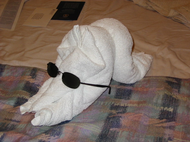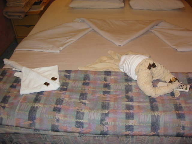 Sachim, our cabin attendant, was into towel origami. Luckily, he left