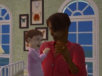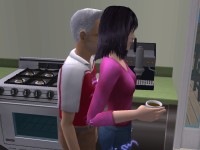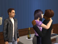 ![]() Leona and Kacper are all over each other most of the time; Ryan is envious (and that stupid champagne bottle lasted for several Sim-years until I finally deleted it; people just would NOT stop toasting!). |